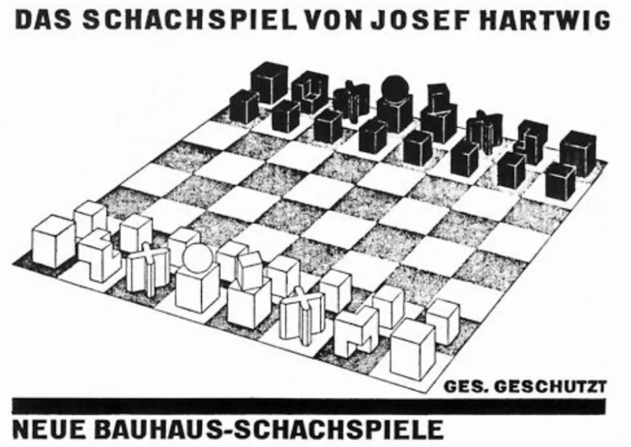 Первым, кто по-настоящему бросил вызов традиционным формам, был Йозеф Харвиг (Josef Hartwig) – изначально немецкий каменщик надгробий а впоследствии выдающийся дизайнер, работавший в знаменитой школе Баухаус в 1920-х годах. Вдохновленный принципами функционализма Баухауса, Харвиг разработал свой культовый шахматный набор, где каждая фигура представляла собой абстрактную геометрическую форму. Король – куб, ферзь – куб с шаром, ладья – куб, слон – куб со скошенной гранью, конь – Г-образная фигура, пешка – небольшой куб. Что особенно интересно, формы фигур напрямую указывали на то, как они перемещаются по доске: королю можно двигаться во всех направлениях (поэтому его символ – куб), слону – по диагонали (Х-образная фигура), в то время как безграничные возможности передвижения ферзя абстрактно сведены к простой сфере, установленной, опять же, на кубическое основание . Этот подход был радикальным протестом против декоративности, акцентируя внимание на чистой функции и смысле. Изготовленные из грушевой древесины, фигуры Харвига тактильны и просты, но их узнаваемость для непосвященного игрока может быть вызовом. Это был чистый манифест индустриального дизайна – форма, продиктованная функцией и движением.