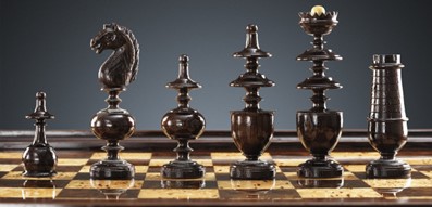 В городках Европы XVI–XIX веков трудились талантливые мастера-резчики, создававшие шахматные наборы с поразительным вниманием к деталям, стремясь выразить в них своё мастерство и дух времени. Материалы – тяжелые виды древесины (черное дерево), слоновая кость. В отличие от простых исламских фигур, европейские шахматы отличались изяществом и художественной выразительностью. Со временем в Европе сформировались пять основных стилей — Селенус, Барлейкорн, Калверт, Режанс и Стаунтон, каждый из которых стал отражением своей эпохи и оказал значительное влияние на дальнейшее развитие дизайна шахматных фигур. Но них мы не станем надолго задерживаться.
