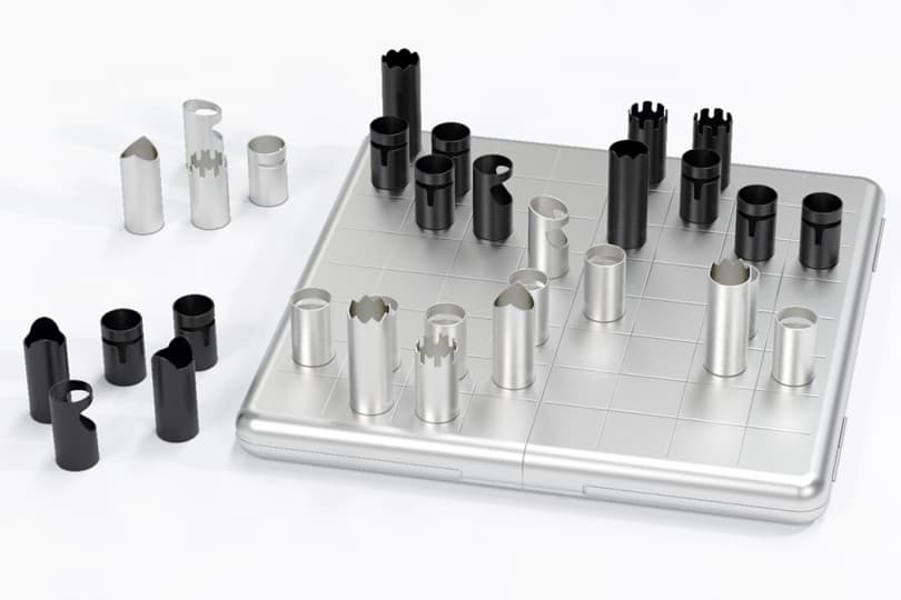 Стильный минимализм итальянского промышленного дизайнера Андреа Тортоне воплощен в шахматном наборе Neo Aluminum Chessboard, 2021. Дизайнер предложил современную интерпретацию классической шахматной доски. Основной технологией производства фигурок является лазерная резка из цельной алюминиевой трубы, что позволяет достичь высокой точности и минималистичного дизайна. Каждая фигура вырезана с учётом исторических форм европейского средневековья, таких как шлемы пешек, митры у слона и мерлоны ладьи, что придаёт им уникальный характер.